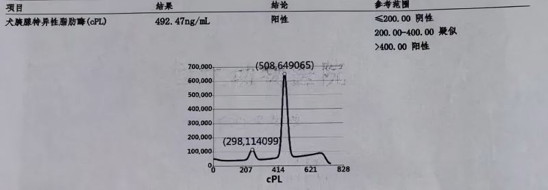 Diagnostisk resultat: Positiv for hundebukspyttkjertelspesifikk lipase (cPL)